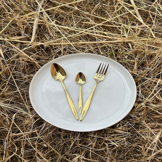 Fecra Doğa 18 Piece Stainless Steel Dessert Cutlery Set for 6 People, Gold