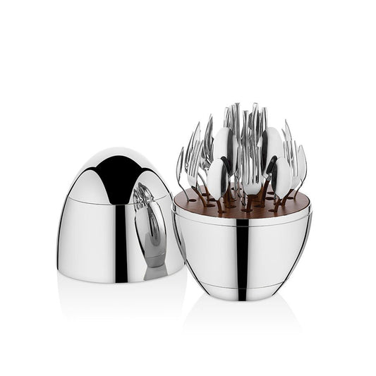 Fecra 24 Piece Stainless Steel Cutlery Set with Egg Stand for 6 People, Silver