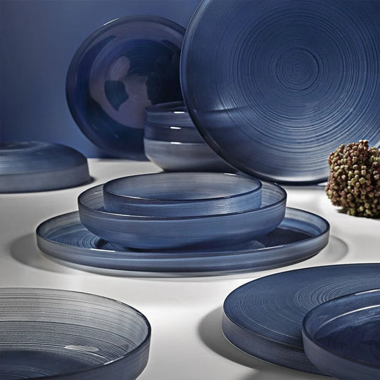 Fecra Loya 18 Piece Glass Dinner Set for 6 People, Blue