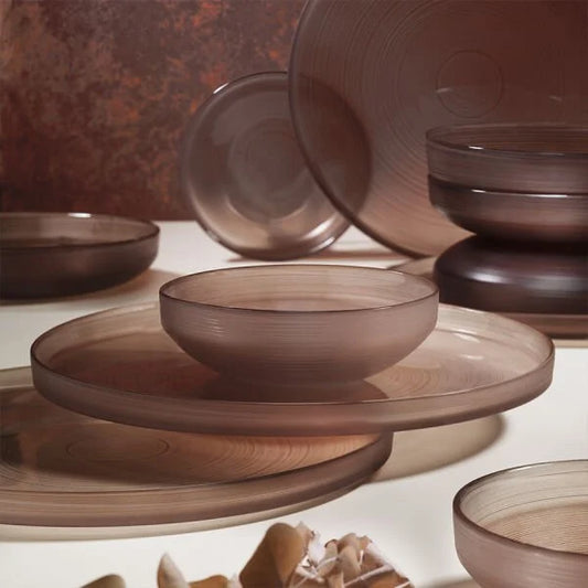 Fecra Circle 18 Piece Glass Dinner Set for 6 People, Brown