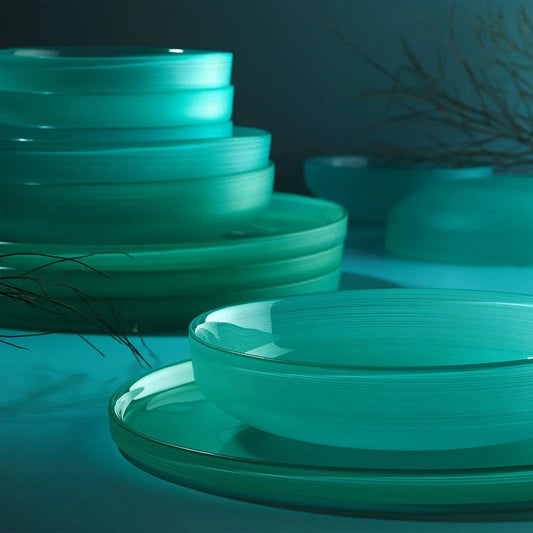 Fecra Circle 18 Piece Glass Dinner Set for 6 People, Cyan Blue