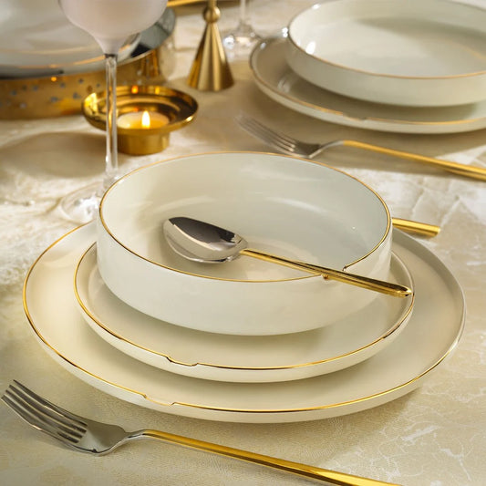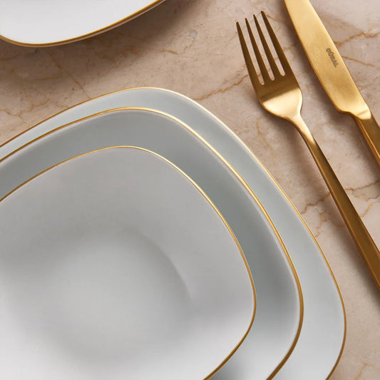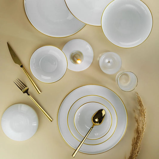 Fecra Aren 24 Piece Porcelain Dinner Set for 6 People, Gold
