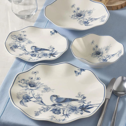 Güral Porcelain Nesrin 24 Piece Porcelain Dinner Set for 6 People, White/Blue