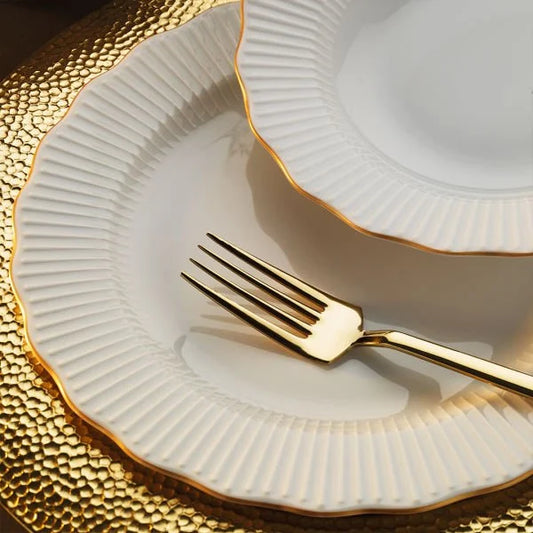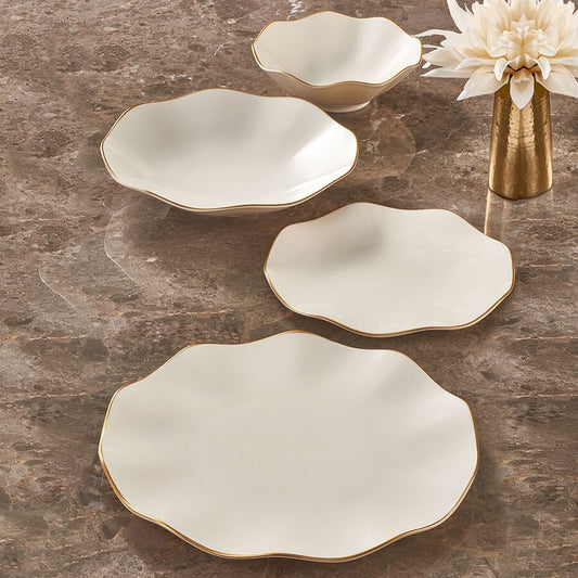 Porland Frilly 18 Piece Porcelain Dinner Set for 6 People, Gold