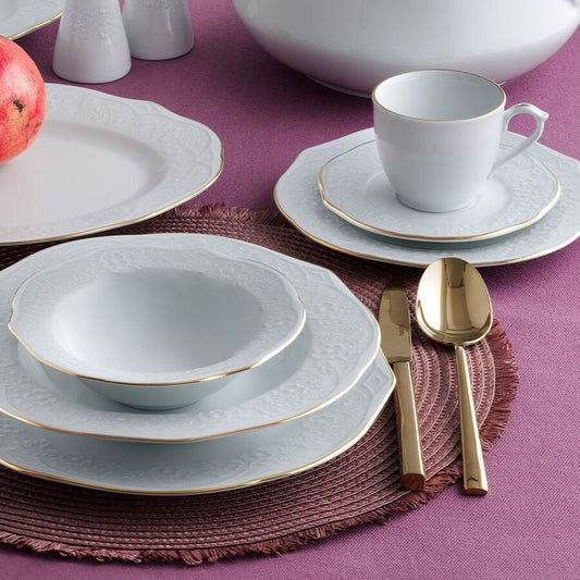 Güral Porcelain Nesrin 24 Piece Porcelain Dinner Set for 6 People, White/Gold