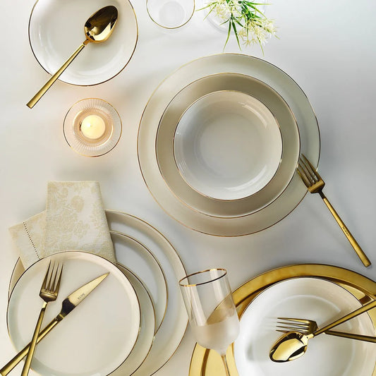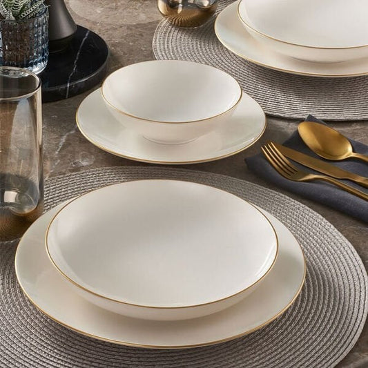 Kütahya Porcelain Milena 24 Piece Dinner Set for 6 People, Cream/Gold