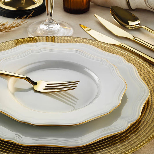 Fecra Loya 18 Piece Dinner Set for 6 People, Clear White/Gold