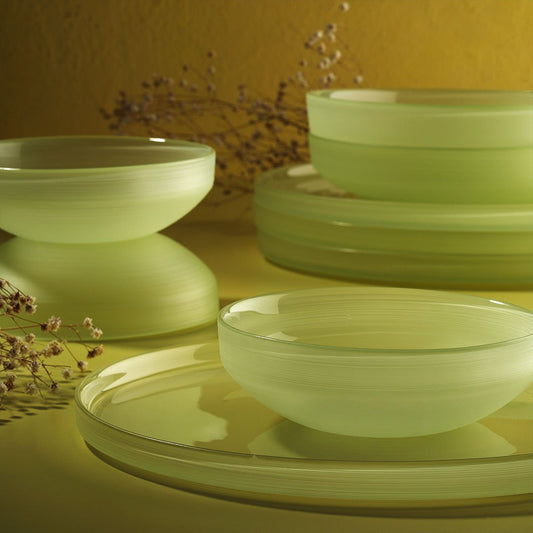 Fecra Circle 18 Piece Glass Dinner Set for 6 People, Green