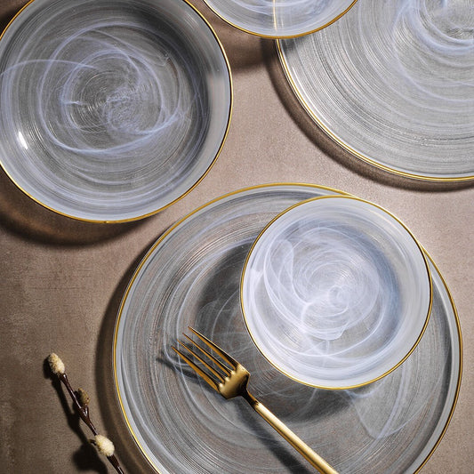 Fecra Circle 18 Piece Glass Dinner Set for 6 People, White/Gold