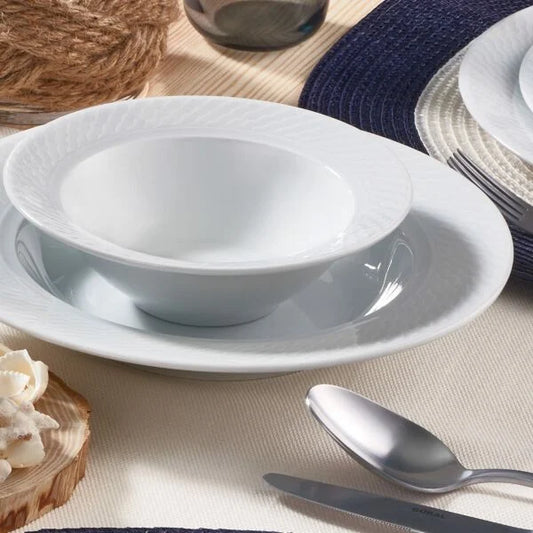 Porland Wavy 18 Piece Porcelain Dinner Set for 6 People, White