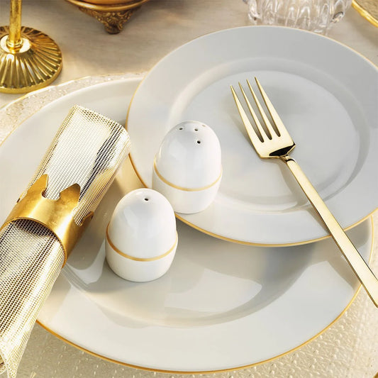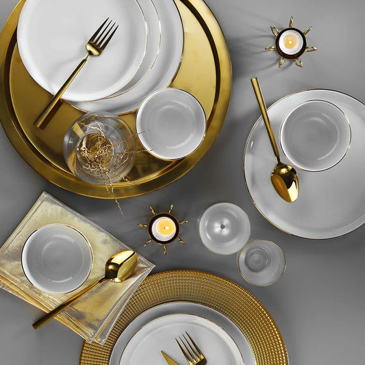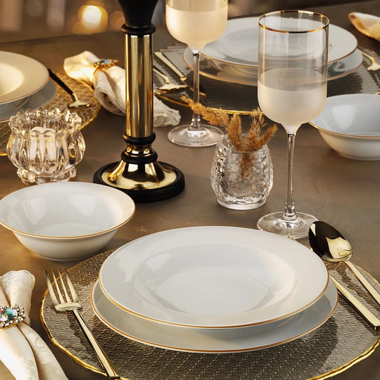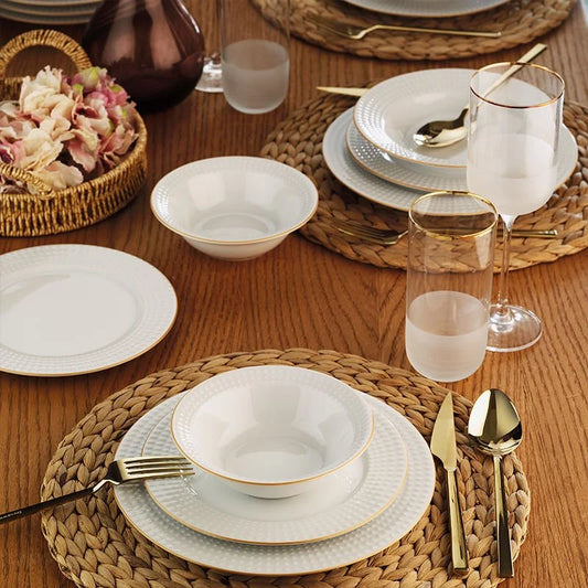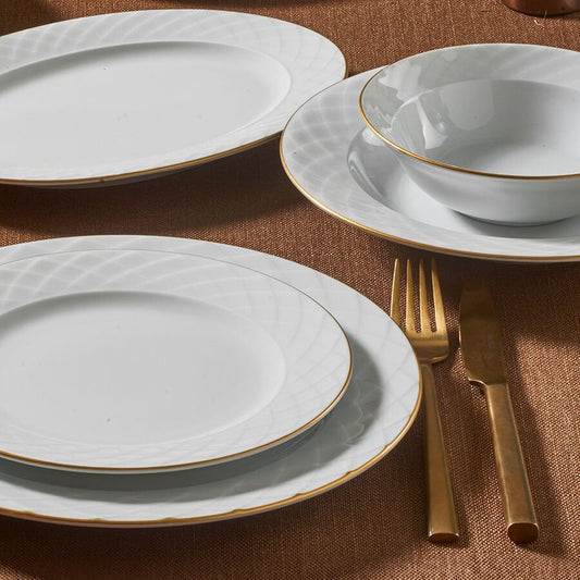 Porland Izem 24 Piece Porcelain Dinner Set for 6 People, White/Gold