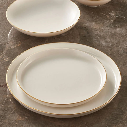 Güral Porselen Bilbao 24 Piece Porcelain Dinner Set for 6 People, Cream/Gold
