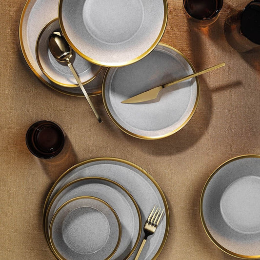 Kütahya Porcelain Forza 24 Piece Porcelain Dinner Set for 6 People, Grey/Gold