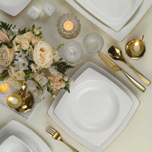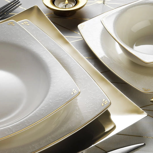 Porland Mina 56 Piece Porcelain Dinner Set for 12 People, Gold