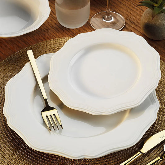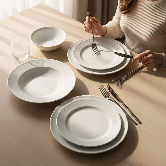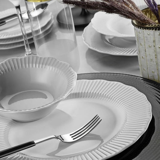 Porland Frilly 18 Piece Porcelain Dinner Set for 6 People, White