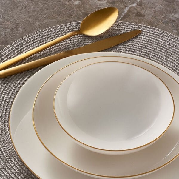 Fecra Aren 16 Piece Porcelain Dinner Set for 4 People, Gold