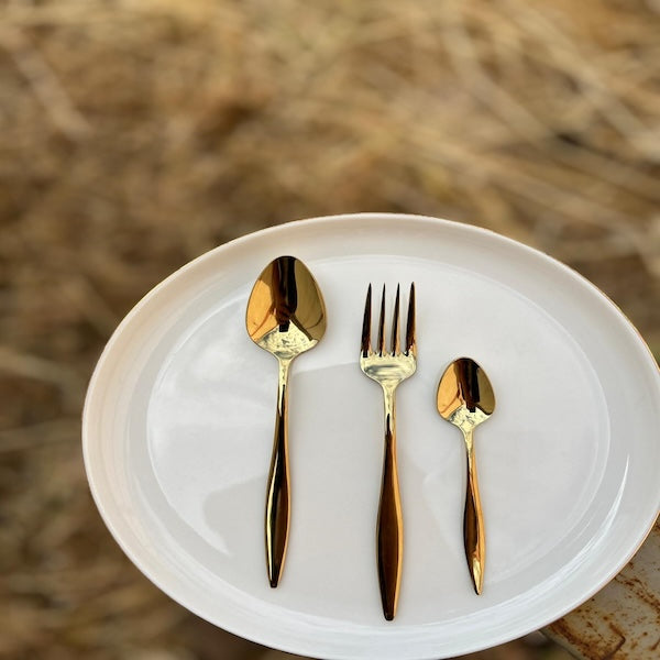 Fecra Ceyda 18 Piece Stainless Steel Dessert Cutlery Set for 6 People, Gold