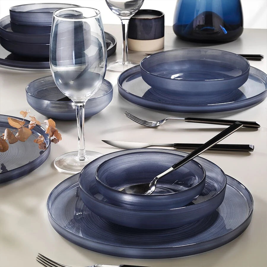 Fecra Circle 18 Piece Glass Dinner Set for 6 People, Anthracite Grey